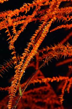 海百合的无数触手随波荡漾,看得我眼花缭乱。我把眼睛都看疼了,也没有什么收获。直到身边的同伴指着一处向我示意,我顺着手指看去,一片黄色海……