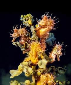 以海马为代表的海龙科鱼类,主要栖息于全球热带、亚热带浅海的海底。其典型生境有四大类:海藻场、海草床、珊瑚礁和红树林。海马、海龙都是拟态伪装的高手,请……