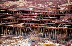 在横断山区腹地的澜沧江畔,有几口能冒出卤水的盐井,生活在那里的纳西族、藏族人民仍然在用千年前的方法晒制盐巴。妇女们背着沉重的木桶,把浅……